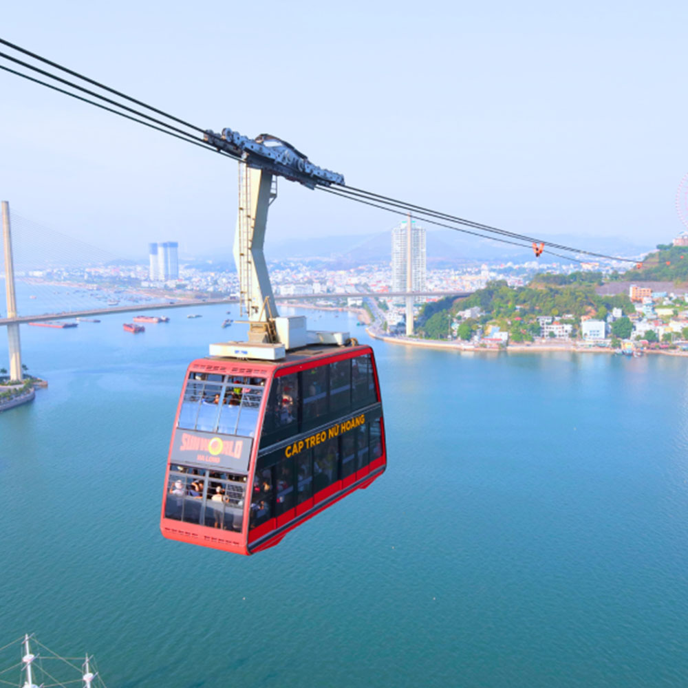女皇雙層纜車是下龍灣最具代表性的地標之一,以「世界最高、最大容量的雙層纜車」聞名。纜車橫跨下龍灣與拜寨橋,登上空中時能俯瞰壯麗海灣、城市天際線與散落海面的石灰岩地形。短短數分鐘,就能飽覽震撼的天海景致,是到訪下龍灣絕不能錯過的空中旅程。