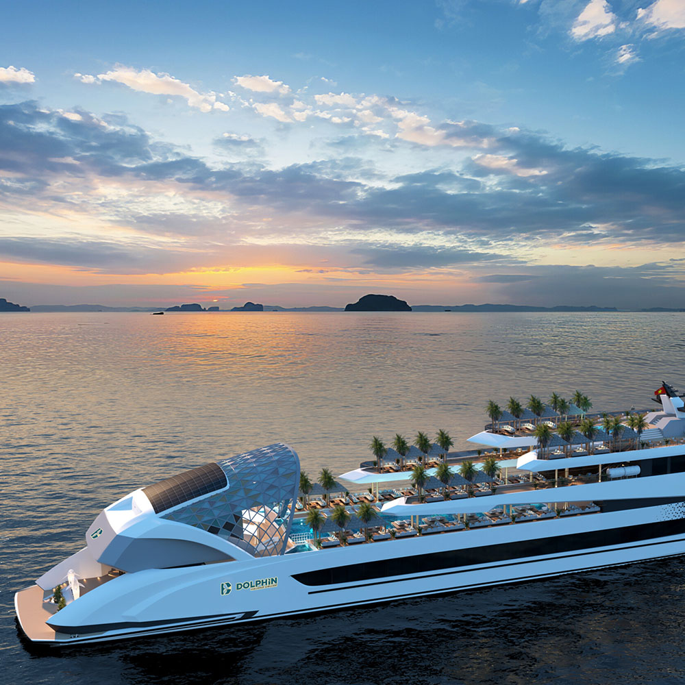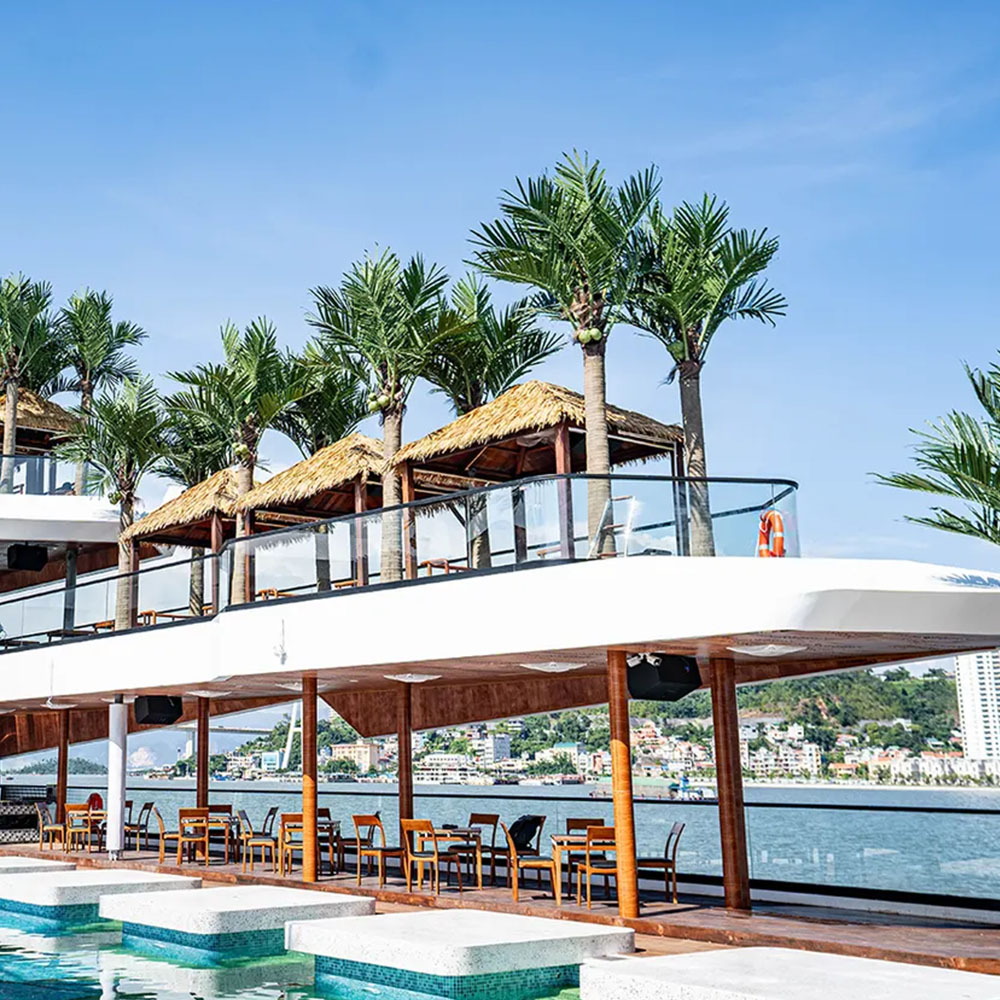 海豚號是下龍灣最新、最豪華的日遊船之一,以高質感的船身設計與貼心服務聞名。全船採用寬敞的觀景甲板、大面積玻璃環景座位,讓旅客無論在哪個角度都能欣賞下龍灣的壯麗景色。 船上提供精緻越式自助餐或桌菜料理,並加碼享用「半隻龍蝦」,讓旅程更具儀式感。 搭乘海豚號,你能以最舒適的方式穿梭在世界遺產海灣中,是全程最期待、最奢華的亮點。