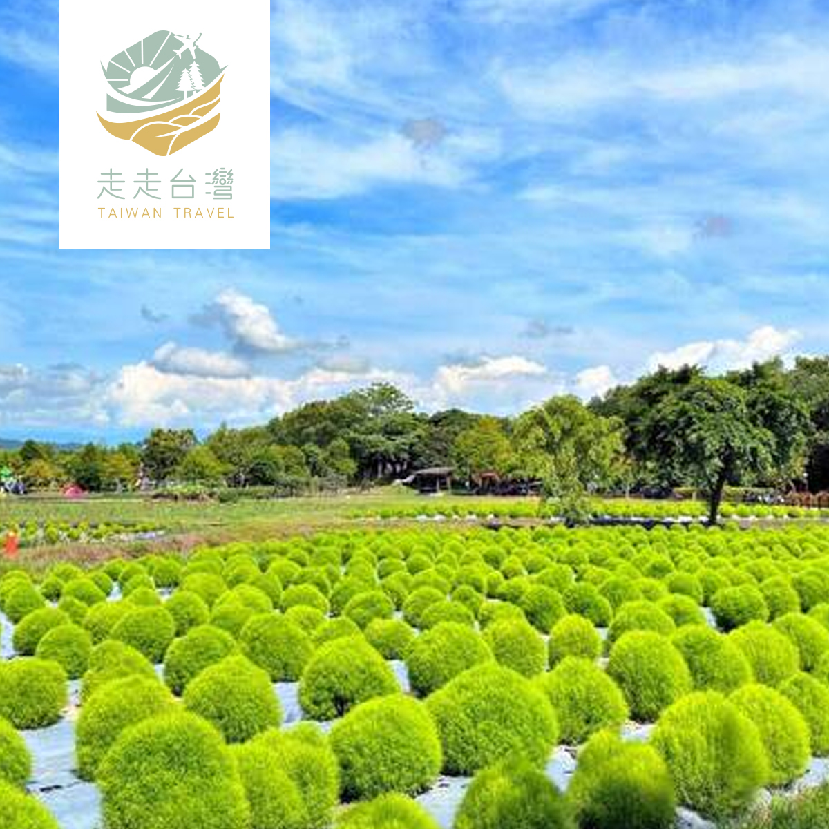 由冬山鄉公所在舊河道碼頭旁種下3000株的日本波波草,目前分成三區栽種,一顆顆圓滾滾、毛茸茸的抹茶丸子,遠看就很療癒,也有規劃小徑,可以走進其中拍照